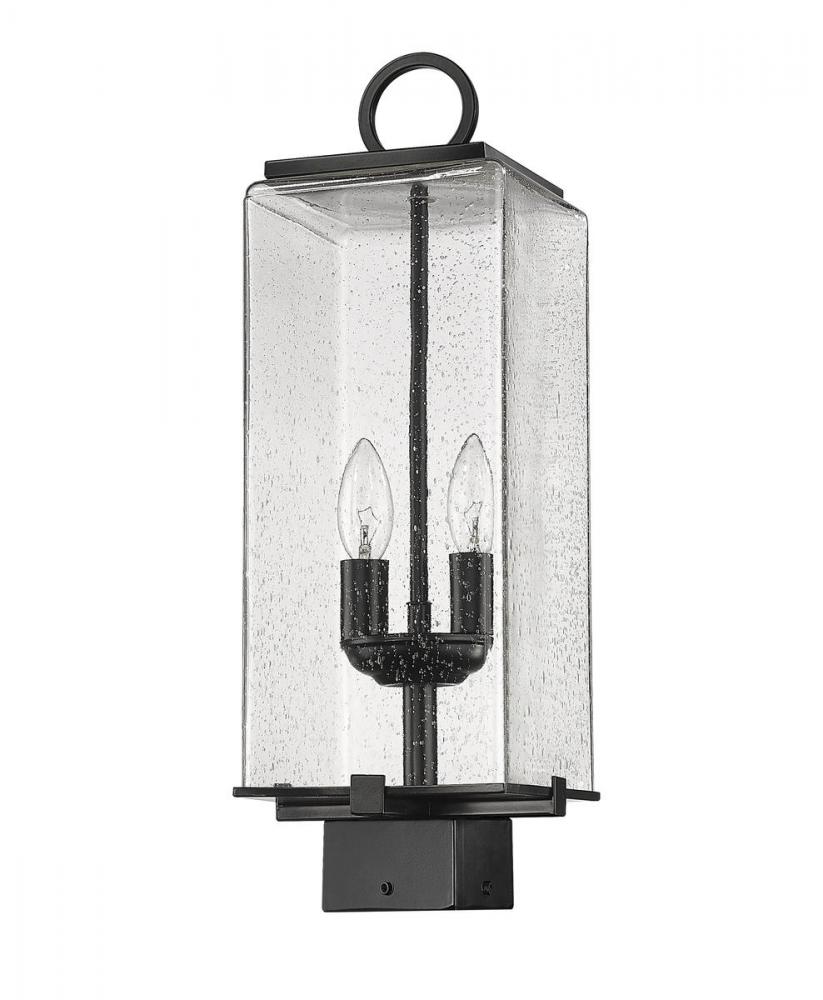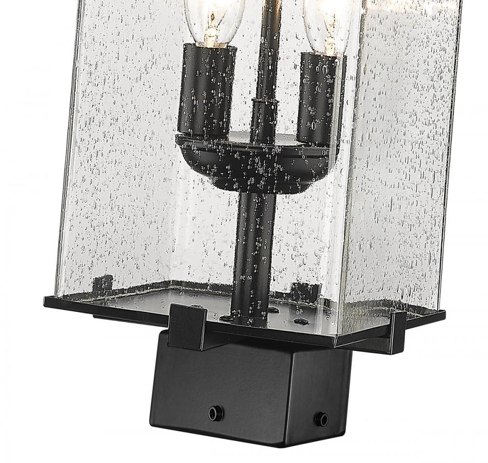 This sleek, coastal-inspired two-light outdoor pier-mounted fixture in black features will look perfect on your porch or patio. Coming with a black finish and seeded glass shade with a rectangular base.