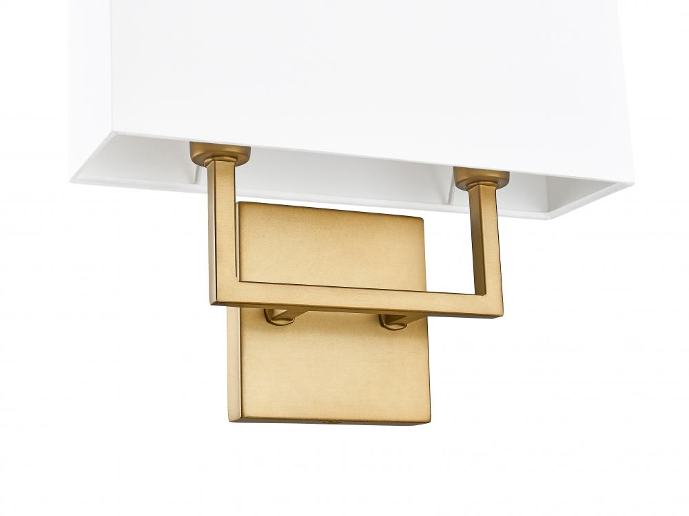 Add a touch of modern appeal to your design with this sleek metal sconce, beautifully supported by a crisp off-white fabric shade. The clean look is reinforced by the sleek arm and backplate. The half-shade design gives the sconce a space-saving low profil