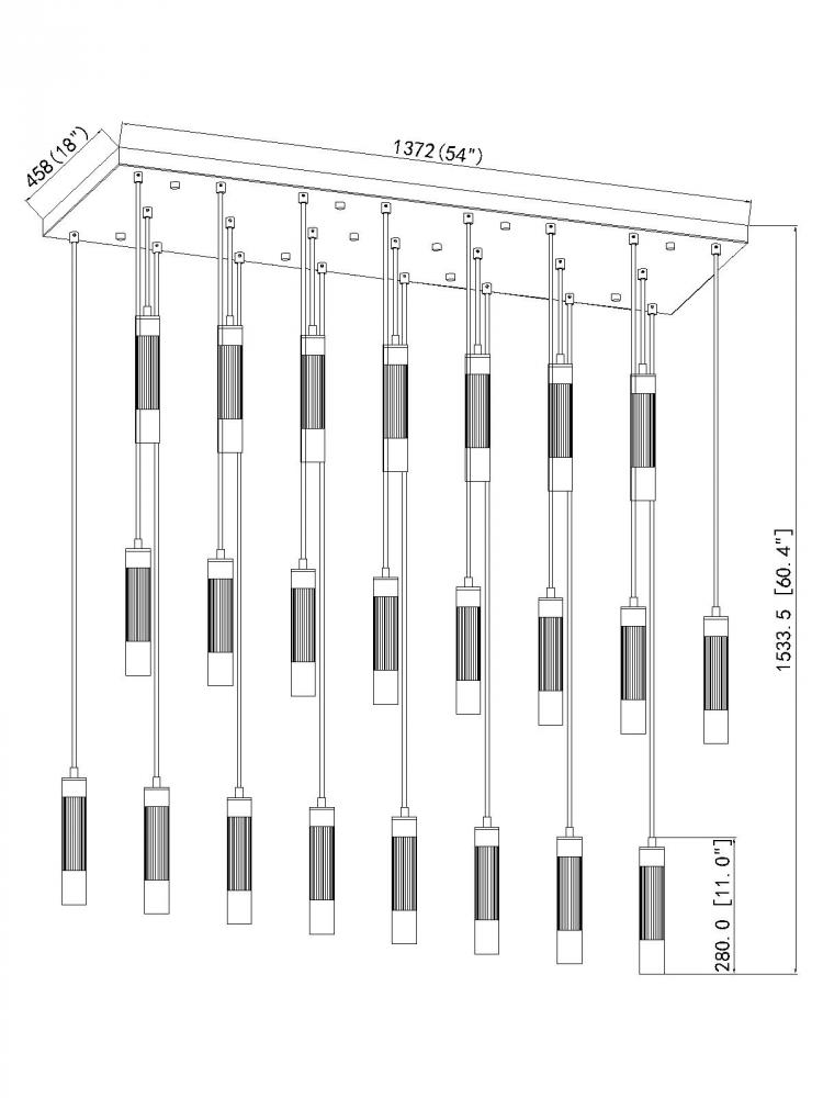 Embrace sophistication with the striking simplicity and rich modern gold finish featured on a contemporary 23-light linear chandelier. Its a tiered design with elongated tubes and petite lights, creating a striking silhouette over foyers, living and dining rooms.