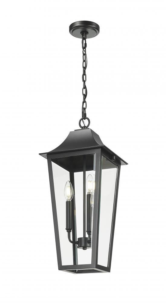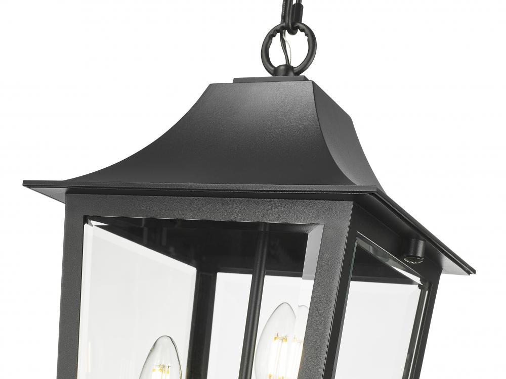 Sleek, long lines bring stellar style to a traditional three-light outdoor hanging light. Its a timeless lantern profile complete with a durable Coastal black finish over stainless steel and clear beveled glass panes for excellent illumination. This striking fixture is the perfect solution over a front entry or dressing up an exterior living space.