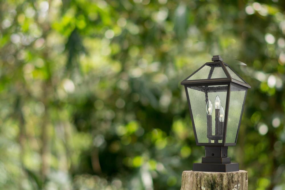 A transitional-style frame with bold glass panels make this a truly timeless collection. Offered in wall mount, pendants and even post lights, the Talbot family is available in two finishes, Midnight Black with Clear beveled glass panels or Rubbed Bronze w