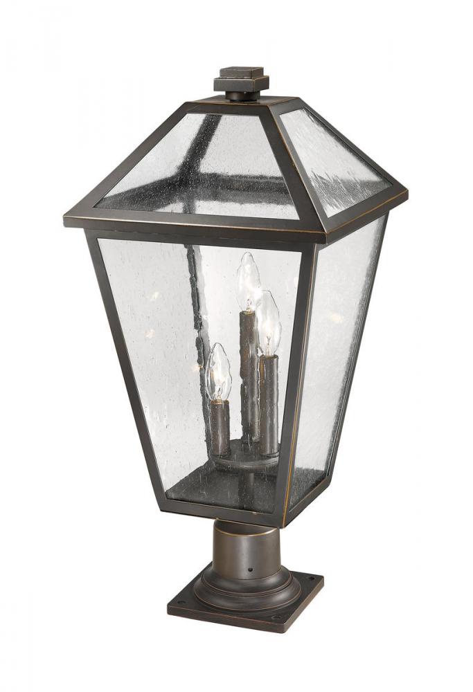 A transitional-style frame with bold glass panels make this a truly timeless collection. Offered in wall mount, pendants and even post lights, the Talbot family is available in two finishes, Midnight Black with Clear beveled glass panels or Rubbed Bronze w