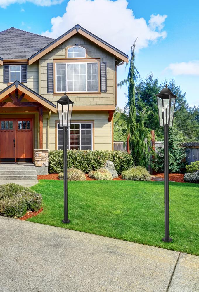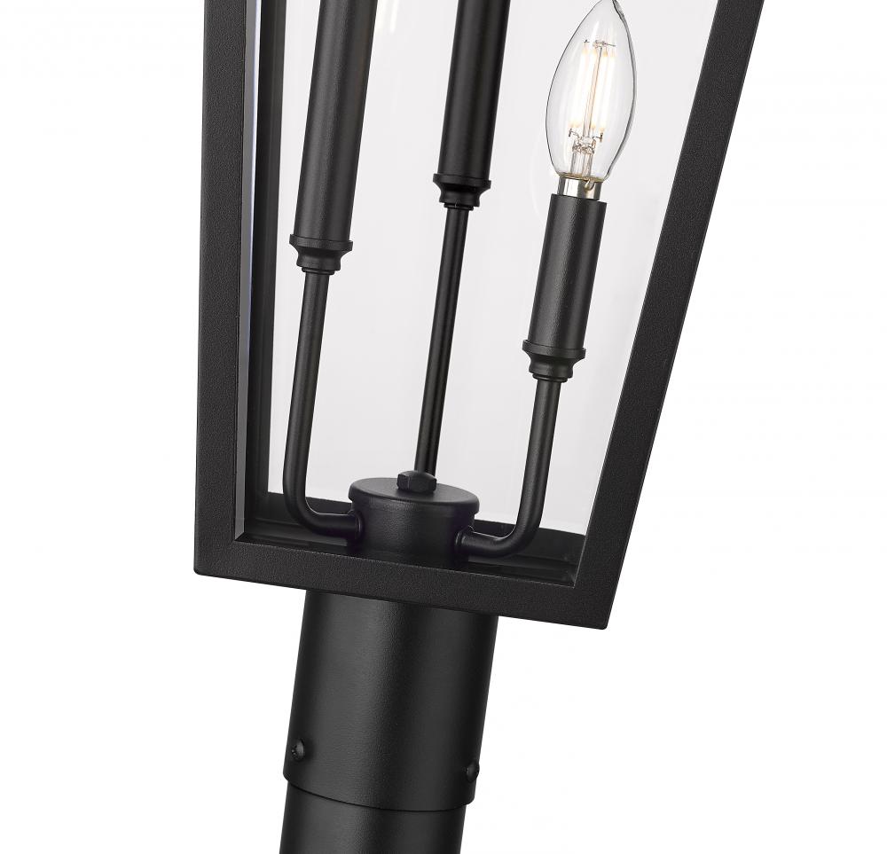 Instill dimension and depth in your landscaping with a charming traditional three-light outdoor post lantern. Its elongated silhouette is created with clear, tapering panes of beveled glass, delivering excellent ambiance and illumination. It features a crisp Coastal black finish over a stainless steel frame, delivering durability for lasting beauty.