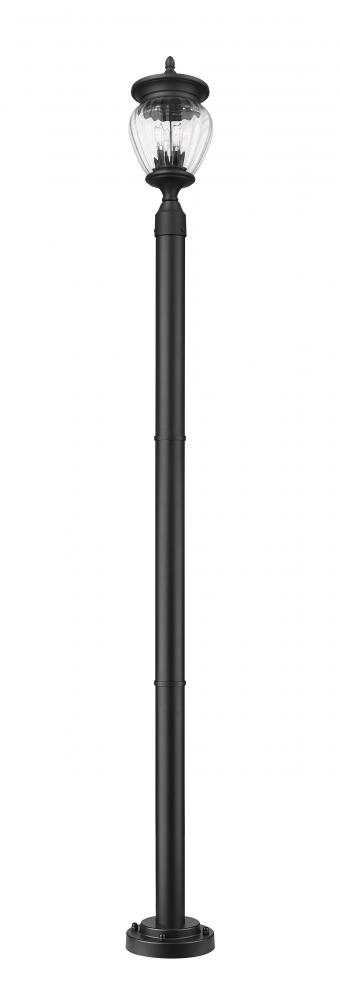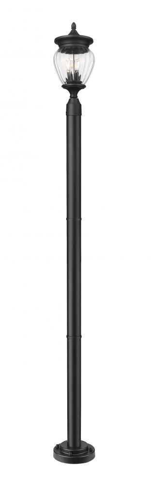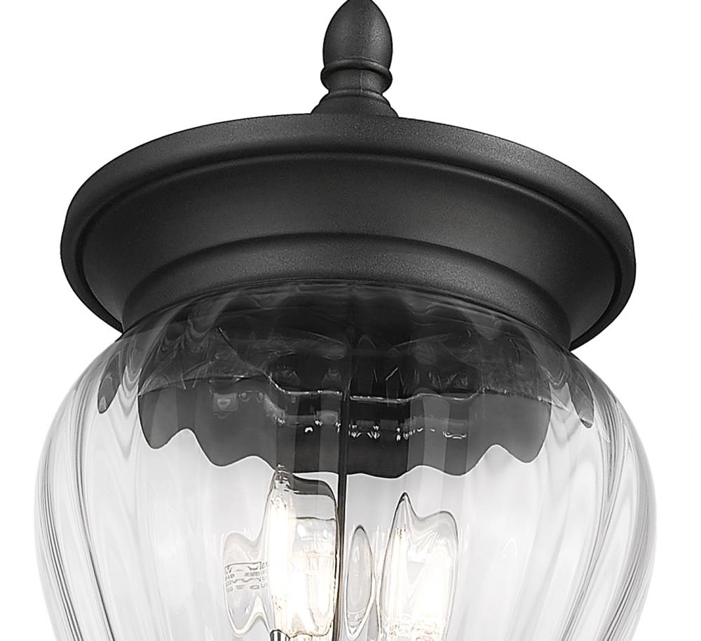 Asian inspiration slides into an artisan motif as this three-light outdoor post-mounted light delivers elegance and makes a statement. Perfect for updating your landscaping with dimmable lighting, this slender fixture is a full unit featuring an aluminum post and light frame made of Coastal black paint finish aluminum paired with teardrop ribbed glass that creates depth and dimensionality.