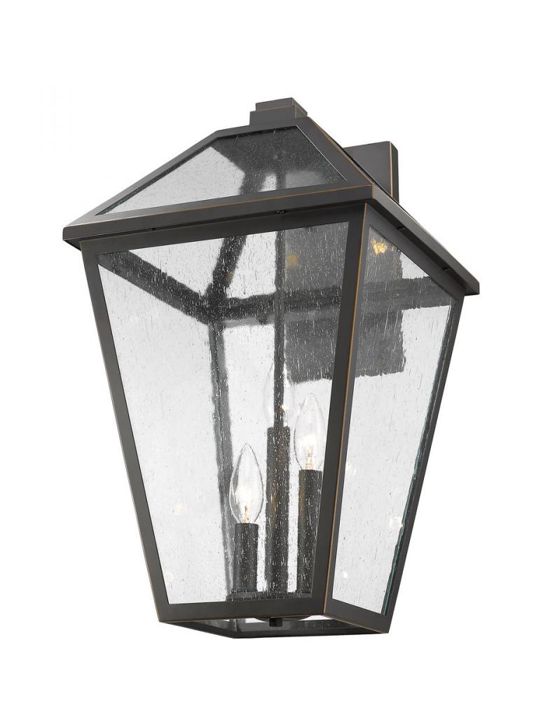Bring bright lighting to an exterior front or back yard space with a classic fixture reflecting a charming village theme. Made from Rubbed Bronze metal and seedy glass panels, this single-light outdoor wall sconce delivers a stylish upgrade to complete a design-forward look on a structure or fence.