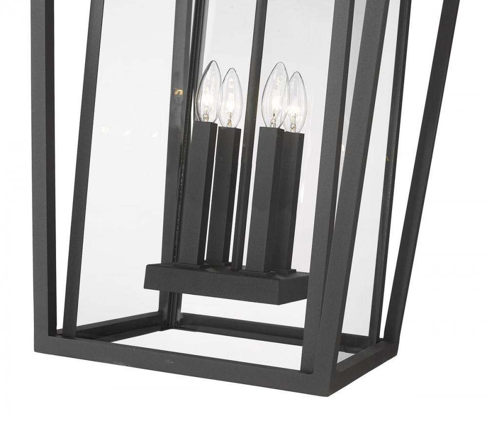 Embrace a minimalist linear design offering sophistication and style for an exterior space. This four-light outdoor chain light fixture features a black finish aluminum housing with geometric precision and subtle angles and specially cut clear glass panels. From the Seoul collection, this contemporary light presents an orderly design with upscale contemporary ambiance.