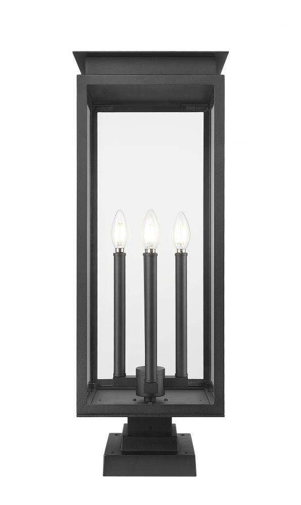 Create a sense of character and curb appeal in your landscaping with this transitional four-light outdoor pier mount light. It boasts tall candelabra lights tucked within a stylish lantern and augmented with glass panes and a latching door. The fixture includes a coastal black finish, creating timeless elegance while providing optimal durability.