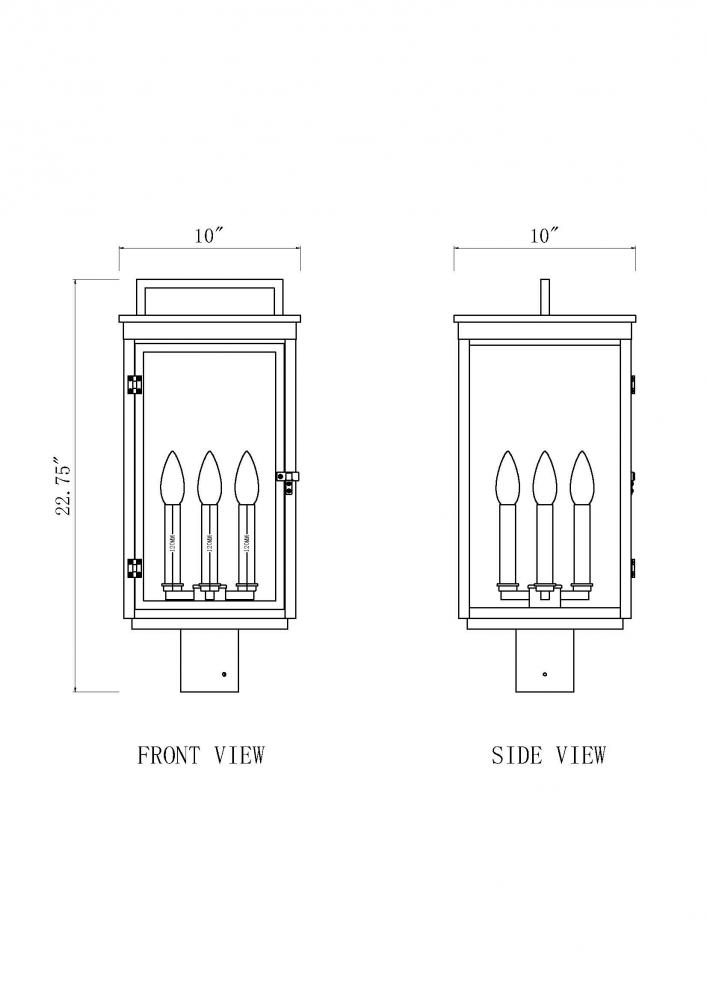 Standing tall in sand black and wrapped in rippling clear seedy glass, this four light outdoor post mount fixture brings serious presence. Four candle-inspired lights glow from within, casting a warm halo that feels like evening magic. The crown and handle detail give it a timeless elegance. It?s the finishing touch that turns any path into a moment.
