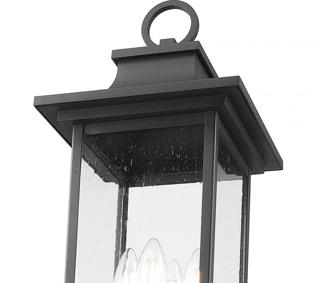 A decorative post adds fresh character and charm to this transitional four-light outdoor post light. In coastal black, its designed for durability while offering timeless charm to your landscaping. Perfect for paths and walkways, the lantern is complete with a flared cap and clear seedy glass panels for excellent illumination.