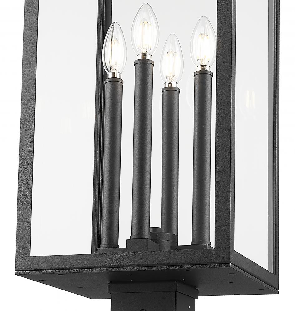 Upgrade your homes curb appeal with a modern four-light outdoor post mount lantern. In coastal black, its a durable, timeless design with a classic silhouette and clean, precise lines. The straight post and squared lantern are a stylish combination in any exterior setting.