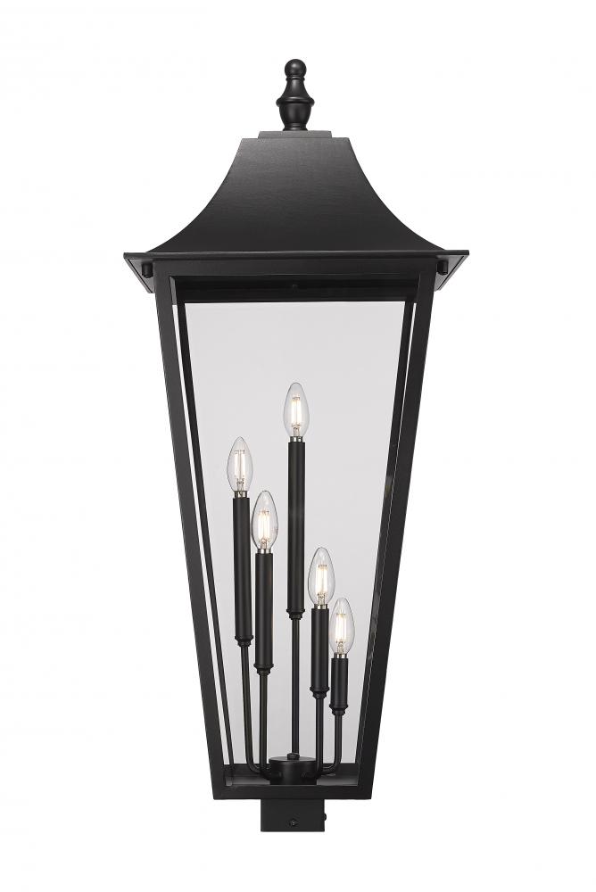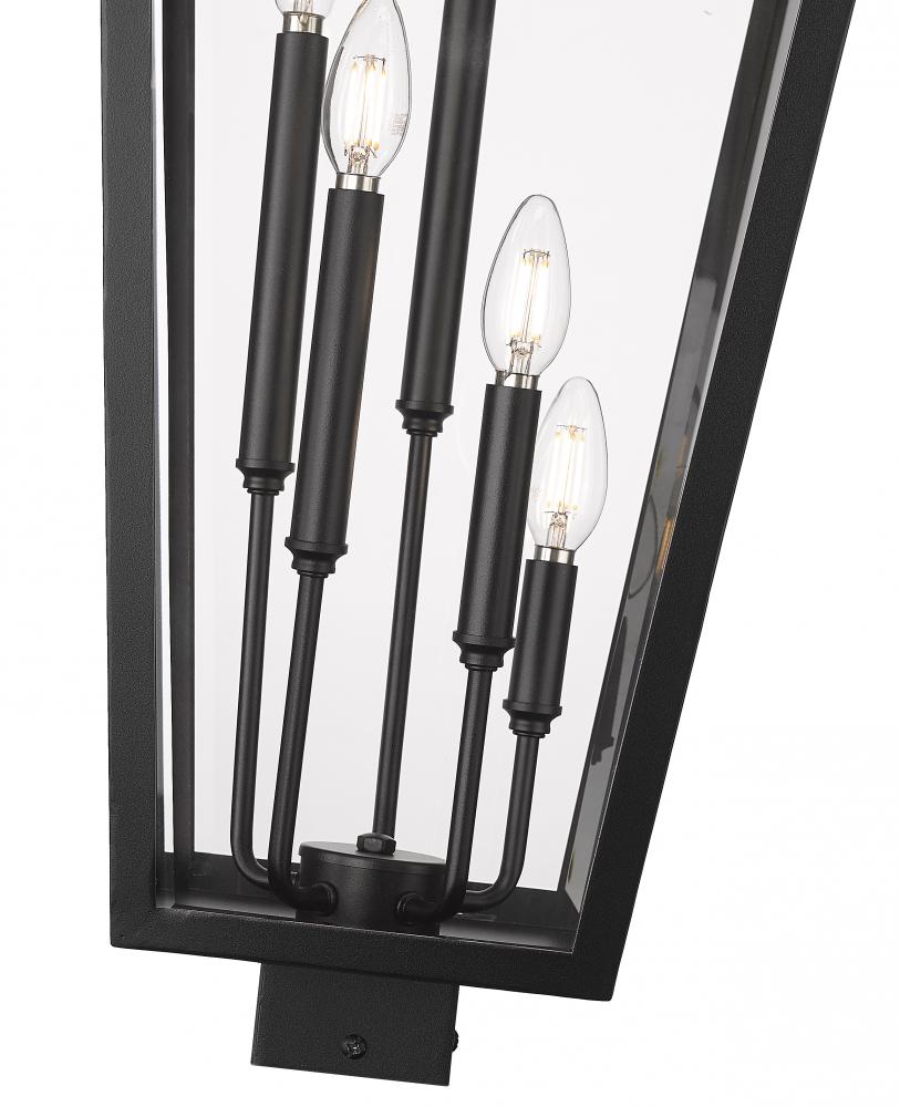 Embrace character with the elongated lantern silhouette of a traditional five-light outdoor post mount light. Charming dotting a deck railing or lighting a walkway, it boasts a Coastal black finish stainless steel frame complete with clear beveled glass for a fresh, dimensional look and feel. Its the perfect way to increase the curb appeal of your stylish home.