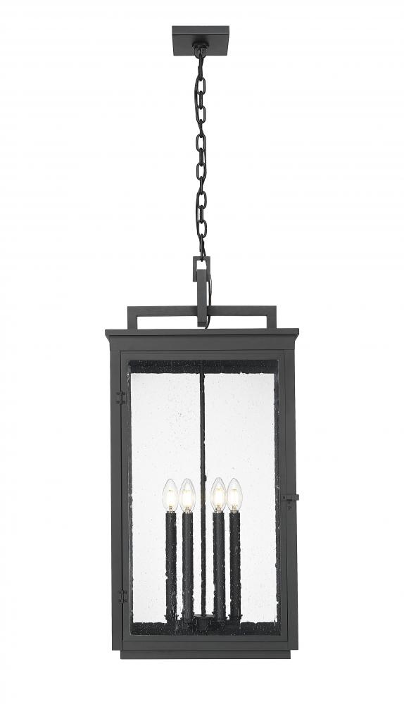 The Hartwell collection evokes the craftsman era with a Mission-like crown and handle on the top and the look of forged metal candles. Ample illumination comes from 1-, 2-, 3-, 4-, 5- and 6-light clusters. Offered in marine grade Black finish.