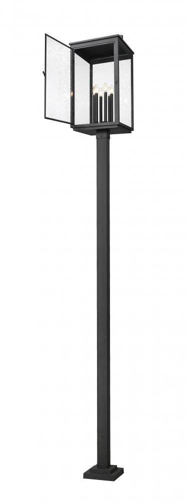 Capture traditional craftsman aesthetics with this Mission style six-light outdoor post mount fixture. From panes of clear seedy glass to its sand black finish, it lends inspired curb appeal to your homes exterior. A smooth, straight post completes the look, adding simplicity to the decorative details featured on the lantern itself.