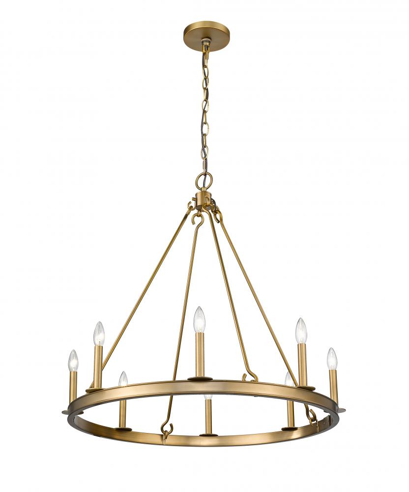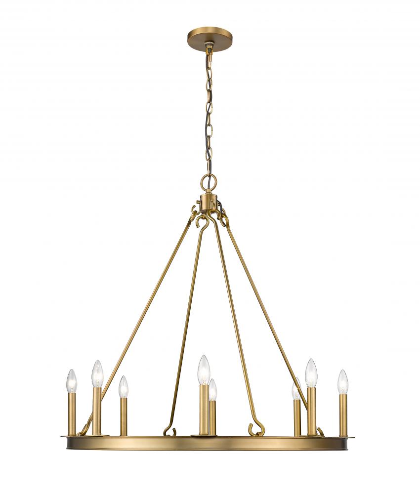 Light up your home both stylishly and literally with the addition of this lovely eight-light chandelier. Its crafted in a lustrous olde brass finish and features the candle-inspired lights in a charming round design. The chandelier is perfectly suited for the breakfast nook, foyer, kitchen, or entertainment room.
