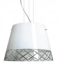 Amelia features a tapered drum shape that fits beautifully in transitional or eclectic themed spaces. Includes flat frosted glass bottom diffuser. Black Hand-cut décor features clear glass with a hand-cut design on the glossy outside surface, while black is painted on the inside. White is painted inside that to reflect more light. This pendant luminaire makes a statement with a handcrafted glass shade and stainless steel cable support. Bronze metal finish.