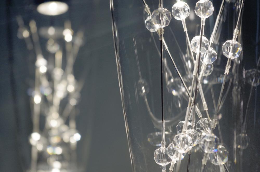 Besa, Willow Cord Pendant for Multiport Canopy, Crystal Rods, Satin Nickel Finish, 1x3W LED