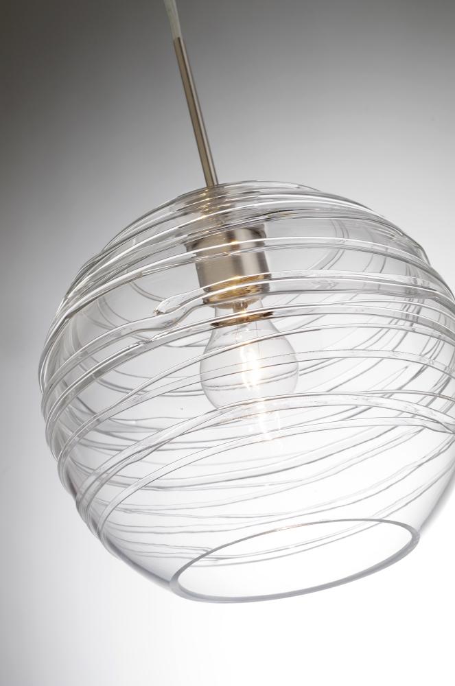Besa, Wave 10 Cord Pendant for Multiport Canopy, Clear, Satin Nickel Finish, 1x8W LED Filament