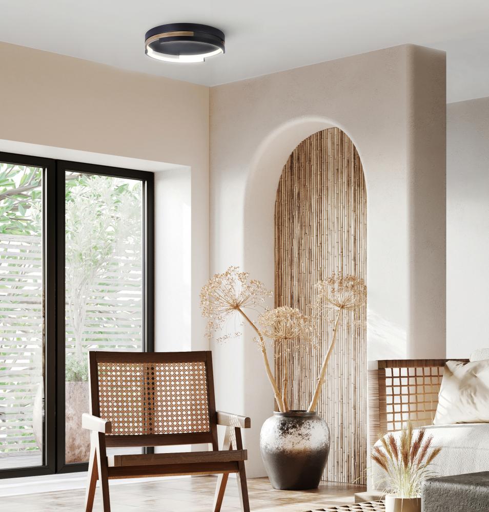 Modern Design: AZRIA is a modern 15-inch LED flush mount fixture that combines style and versatility. With its sleek Matte Black and brushed brown color scheme, it adds a contemporary touch to any room, enhancing the aesthetic appeal of your space.