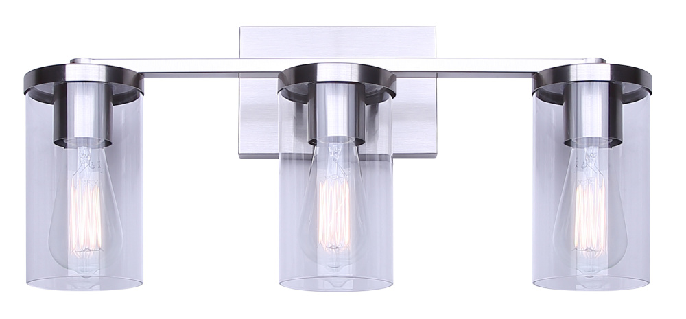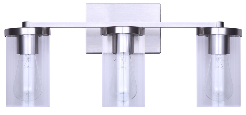 Add a touch of sleek sophistication to your bathroom with the Britton 3-Light Vanity Light. This modern fixture features a clean-lined design with three clear glass shades and a durable brushed nickel finish, creating a timeless look that works effortlessly in a variety of settings. Perfect for mounting above mirrors, this light delivers brilliant illumination with three 100W Type A bulbs (not included), making it ideal for makeup, shaving, or general lighting.At 21 inches wide, 9.62 inches high, and 6.12 inches deep, Britton is sized right for both small and medium vanities. Whether you're refreshing a powder room or completing a full bathroom renovation, this fixture offers a polished aesthetic and excellent performance. Designed for easy installation and built to last, the Britton vanity light is a smart and stylish addition to any bathroom.