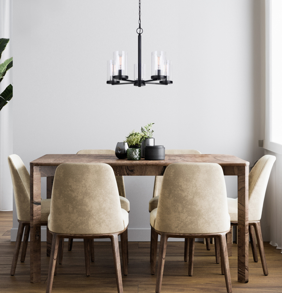 Elevate your interior with the Britton 5-Light Chain Chandelier, a stunning blend of modern sophistication and transitional charm. Featuring a matte black finish and clear glass shades, this chandelier delivers striking contrast and timeless elegance in any space. Whether you're updating a dining room, kitchen, or entryway, Britton's versatile design makes a stylish impact.With an adjustable hanging height from 18.12 to 66 inches, it's perfect for a variety of ceiling heights and room sizes. The five-light configuration ensures ample illumination, while the open glass shades create a radiant, welcoming glow. Compatible with 60W Type A bulbs, this fixture is ideal for both functional and decorative lighting. Quick and easy to install, Britton brings a polished, designer look to your home with minimal effort.