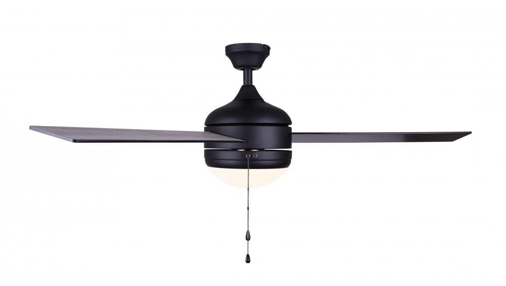 The Calibre III CF48CA33ORB, like a well-oiled machine from the industrial age, reimagined for the contemporary abode, stands poised with a 48-inch wingspan. Its oil-rubbed bronze finish is the very essence of understated elegance, reminiscent of a time when craftsmanship was king and every detail mattered.The three reversible blades, boasting a walnut finish on one side and medium oak on the other, offer a versatile palette to match the moods and whims of their owner. They are not just blades; they are the quiet custodians of your comfort, stirring the air with a grace that is felt but seldom heard.This ceiling fan's dual mount capability allows it to dwell in the lofty heights or sit flush against the ceiling—a chameleon among its kind, adapting seamlessly to its surroundings. The flat opal glass, a beacon in the center, diffuses the light from two 60-watt Type A LED bulbs, included for your convenience, creating an ambient glow that softens the edges of a hard day.The Calibre III is more than a mere appliance; it's a statement. A testament to the confluence of form and function, a celebration of days gone by, and a welcome embrace to the modern era's comforts