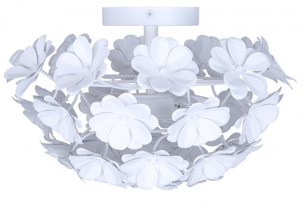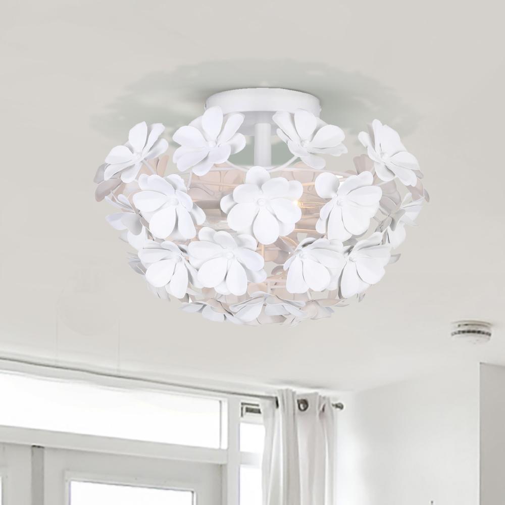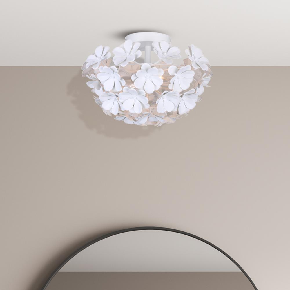 CASSIA 15 in. 2-Light 60-Watt Whimsical White Flush Mount with Matte White Metal Flower Shade