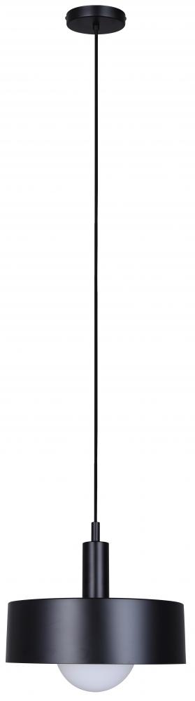 DAYLON 60-Watt 1 Light Matte Black Pendant with Frosted Glass Shade for Living Areas