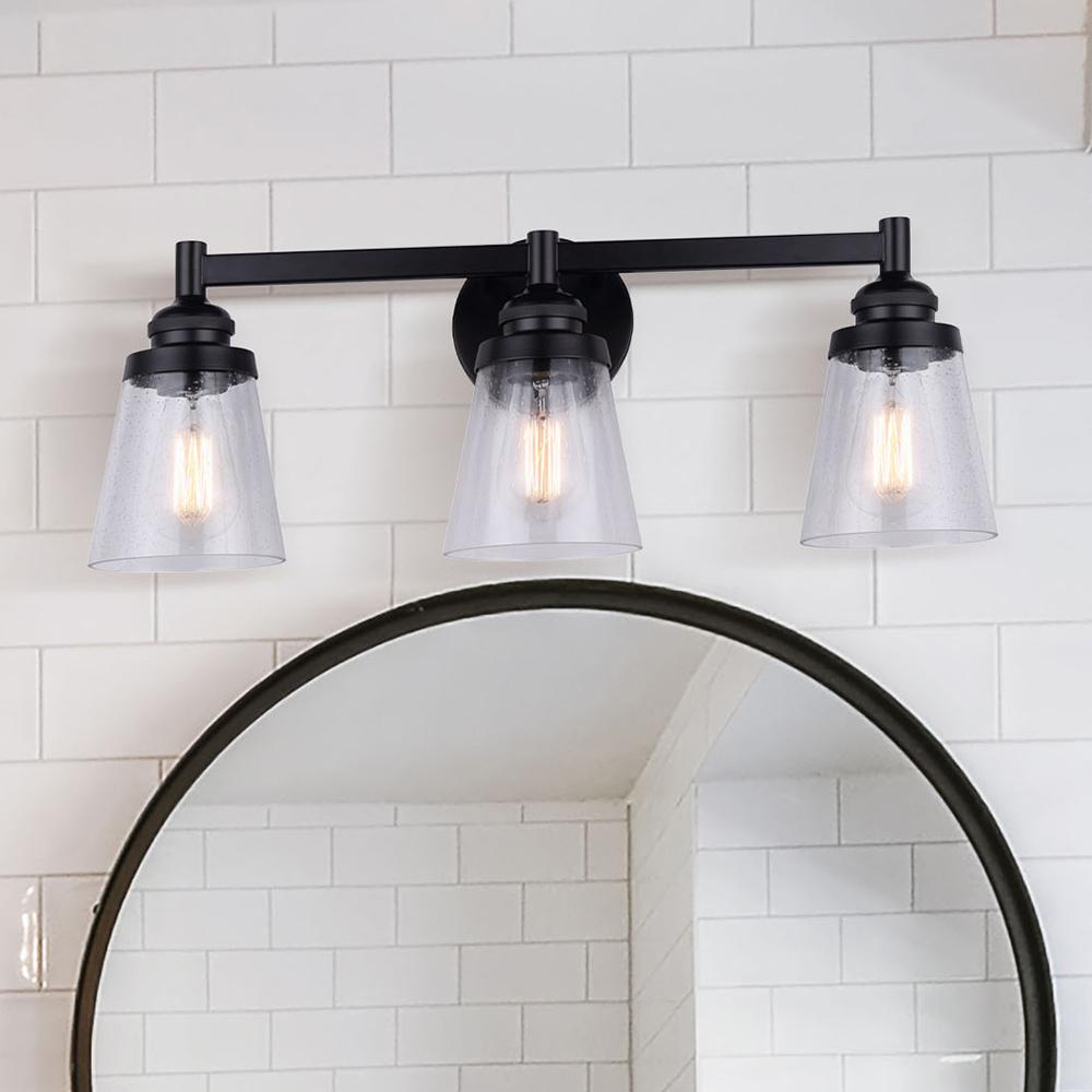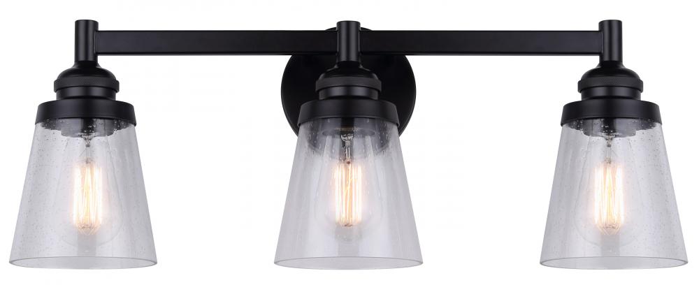 The Declan 3 Light Vanity, Black Finish captures the spirit of eclectic mix. A stunning piece that combines Matte Black and User Replaceable Bulb to create an unforgettable ambiance.