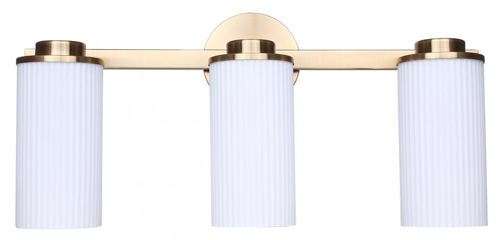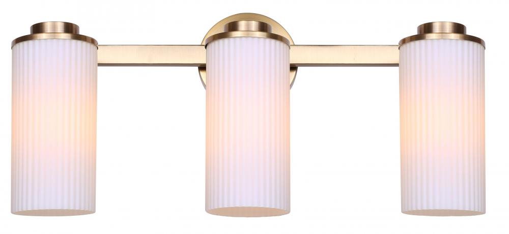 KINSLEA 23 in. 3 Light Gold Vanity with White Ribbed Glass Shade