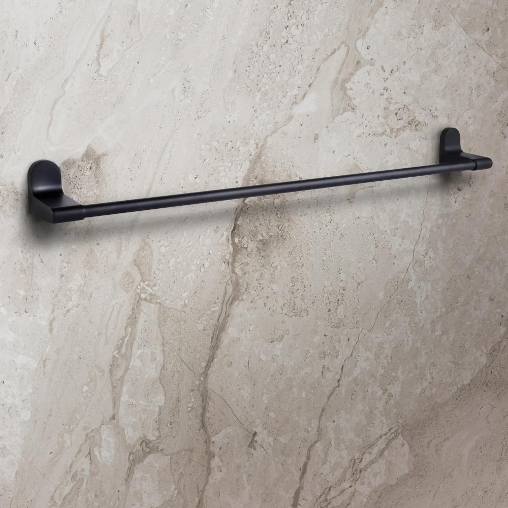 Introducing the Lyla Towel Bar, a sleek and modern staple for any bathroom that combines style with essential functionality. Finished in a sophisticated matte black, this towel bar enhances your space with a contemporary and clean look. The bar extends 24 inches in width, is 2.125 inches high, and has a depth of 2.75 inches, providing ample room for your bath towels to hang comfortably and dry efficiently. The matte black finish not only contributes to its chic appearance but also offers practicality, being resistant to fingerprints and water spots. The Lyla Towel Bar is designed for durability and is as easy to install as it is to maintain, ensuring it remains a prominent feature in your bathroom for years to come.