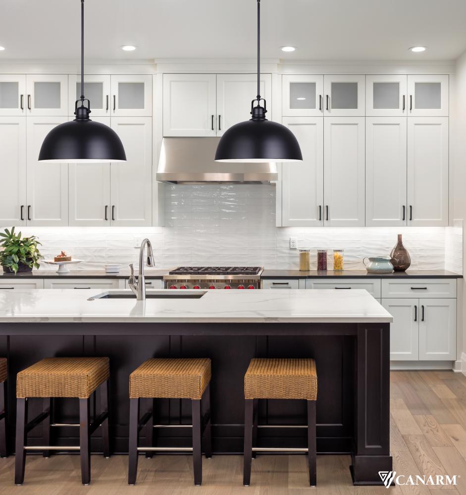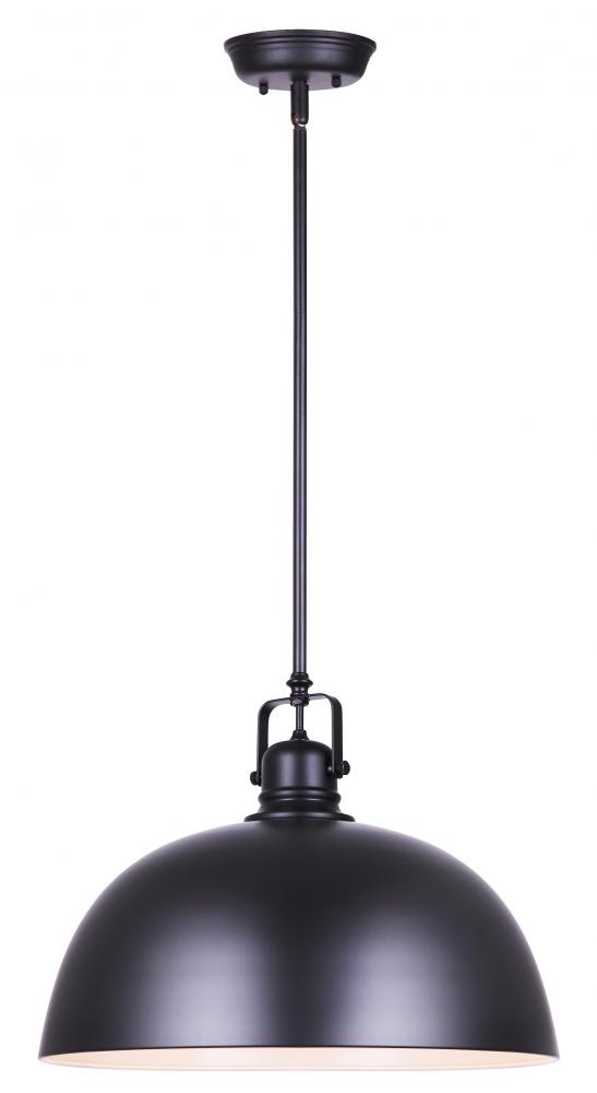 Polo 1-Light Transitional Pendant Light Matte Black Finish, White Interior for Kitchen Island