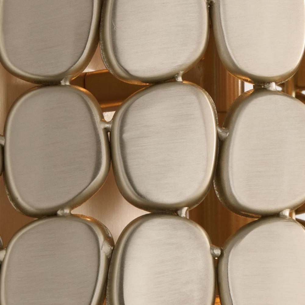 DETAILS: Intricately placed medallions shimmer in the light, while the Champagne Brass finish brings a refined elegance.