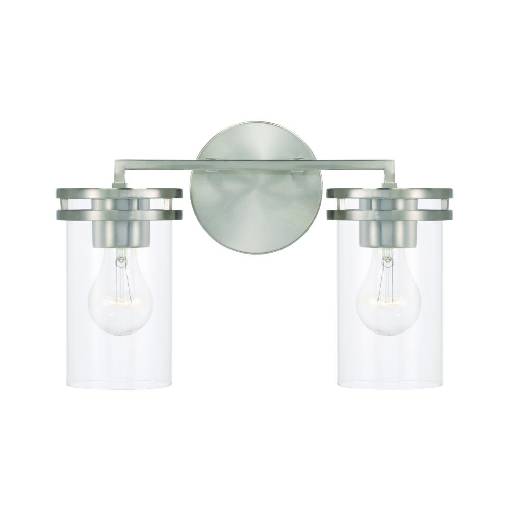 14.25"W x 9.75"H 2-Light Vanity in Brushed Nickel with Clear Glass