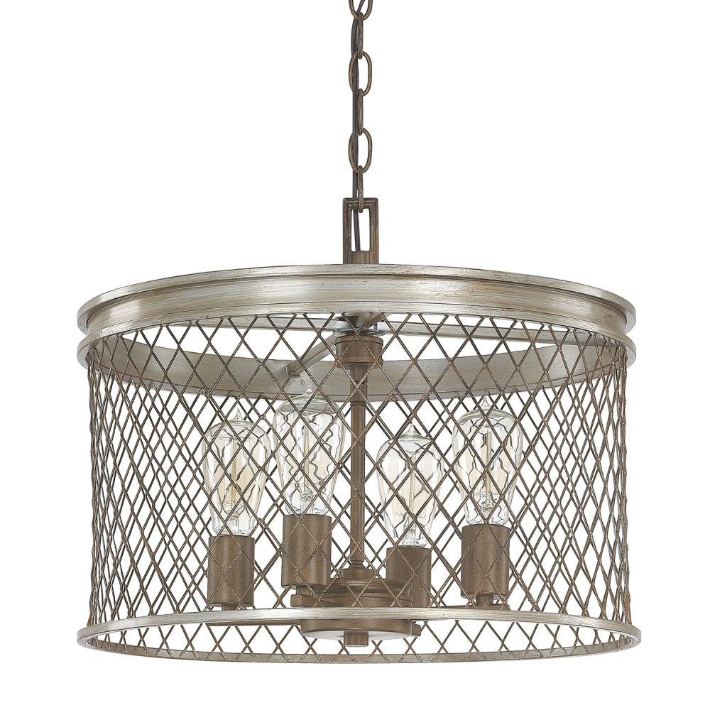 Our Eastman 4-light pendant adds sleek, urban style to a kitchen or dining area with its open mesh design and our unique Silver and Bronze painted finish. It combines elements of both hues, blending beautifully with other metallics in your décor. Vintage-style bulbs add the finishing touch to the design, part of our Donny Osmond Home by Capital Lighting collection.