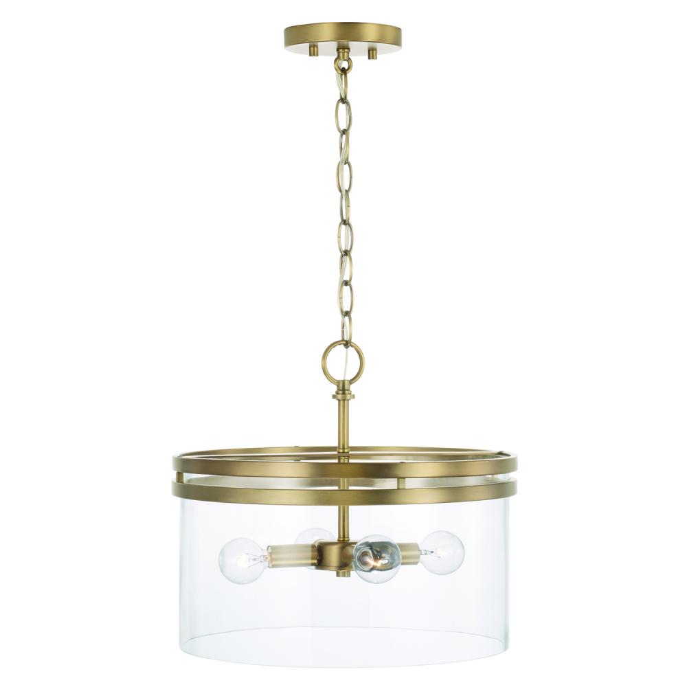 14.5"W x 12.75"H 4-Light Dual Mount Pendant or Semi-Flush in Aged Brass with Clear Glass