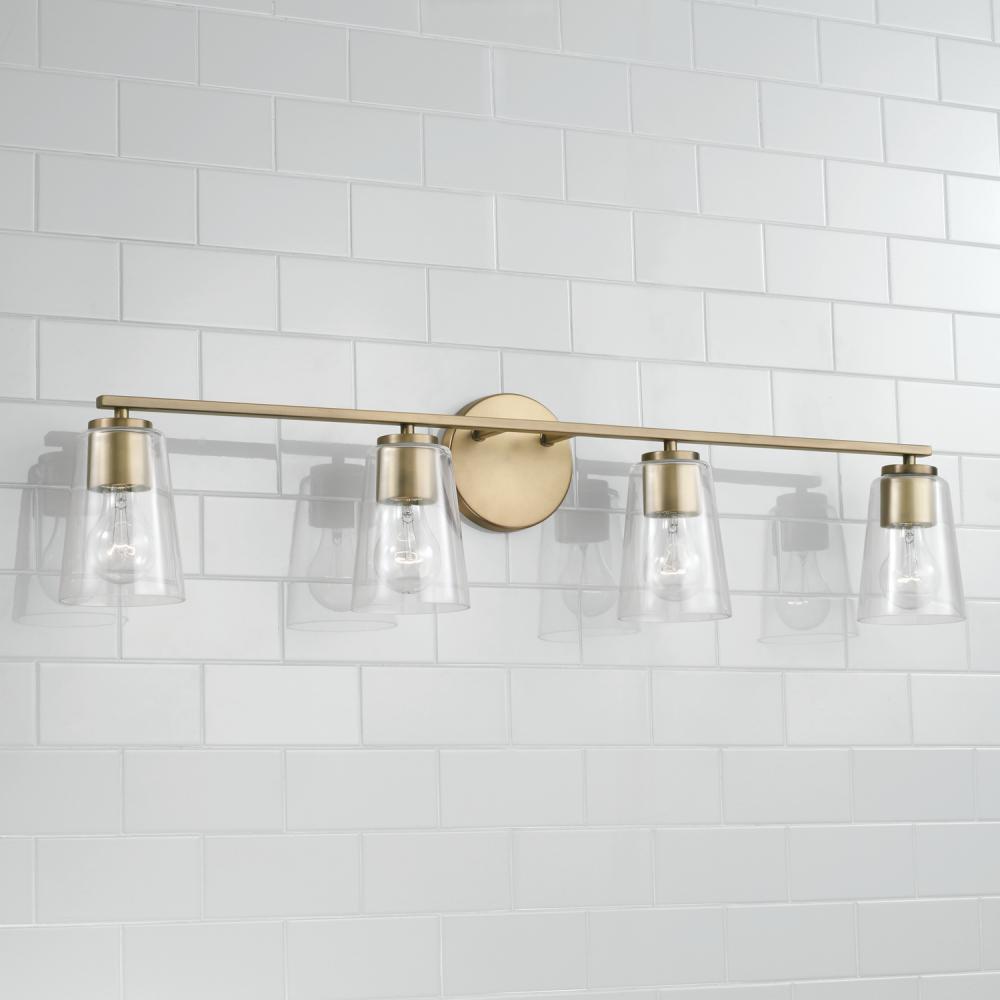 35.25"W x 8.25"H 4-Light Vanity in Aged Brass with Clear Glass