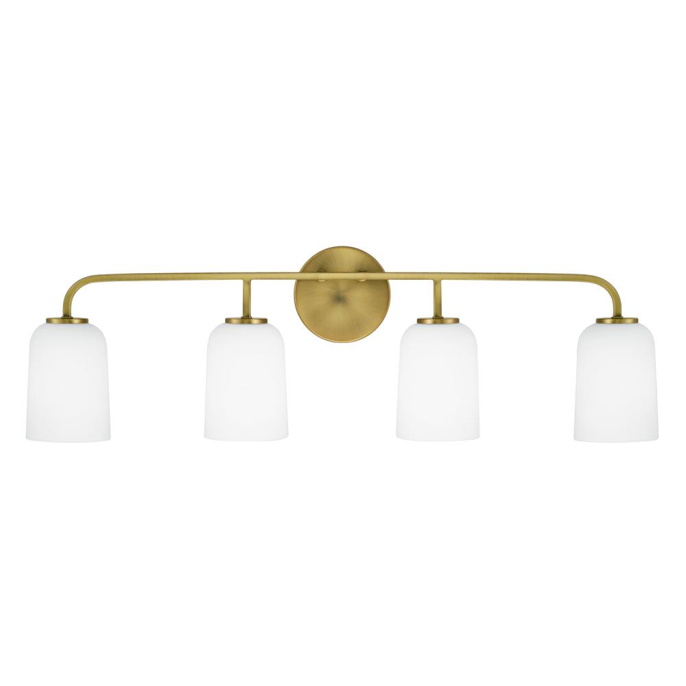 32.25"W x 9.75"H 4-Light Vanity in Aged Brass with Soft White Glass