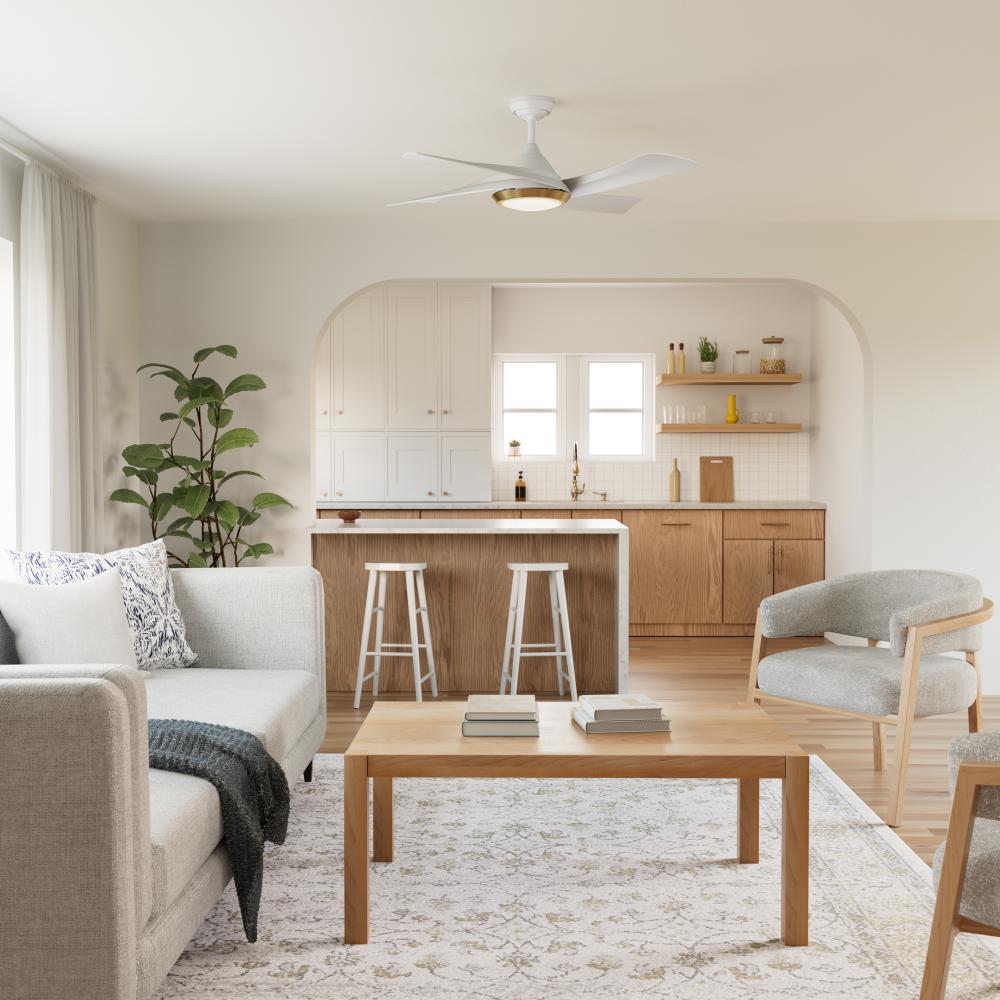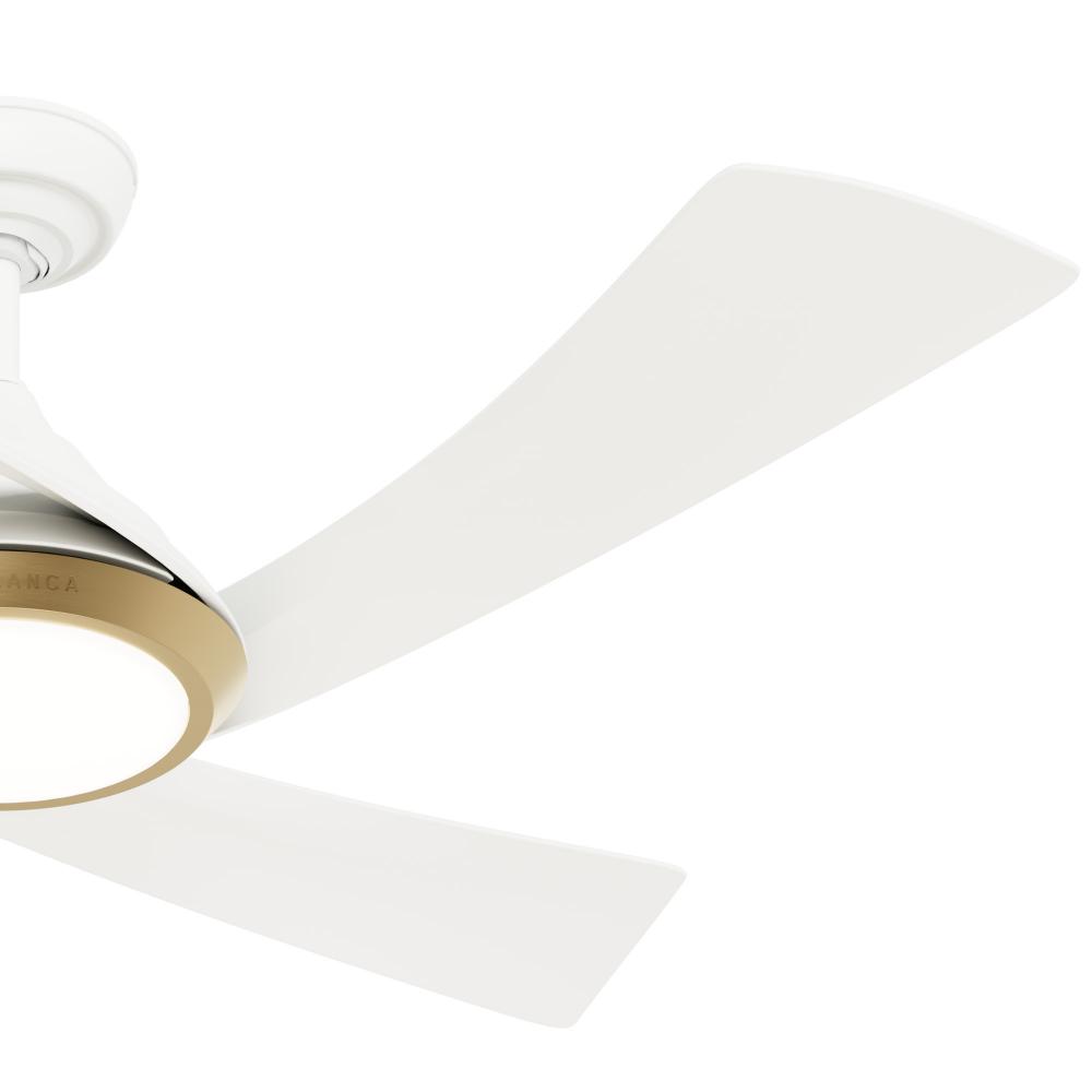 EFFORTLESS CONTROL & DIMMING: Integrated LED lighting with painted cased white glass, paired with a wall control and handheld remote for easy adjustments to fan speed and brightness.