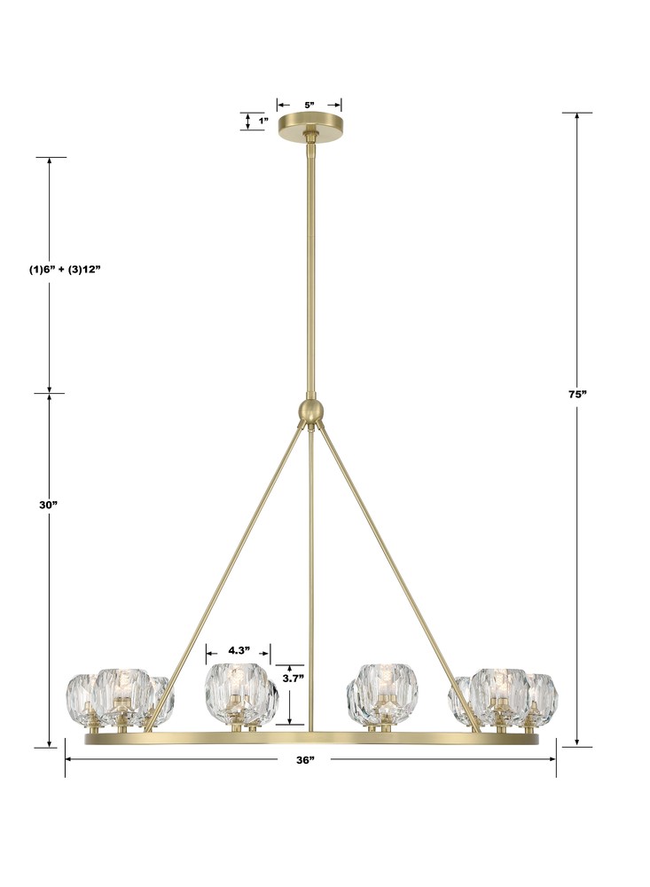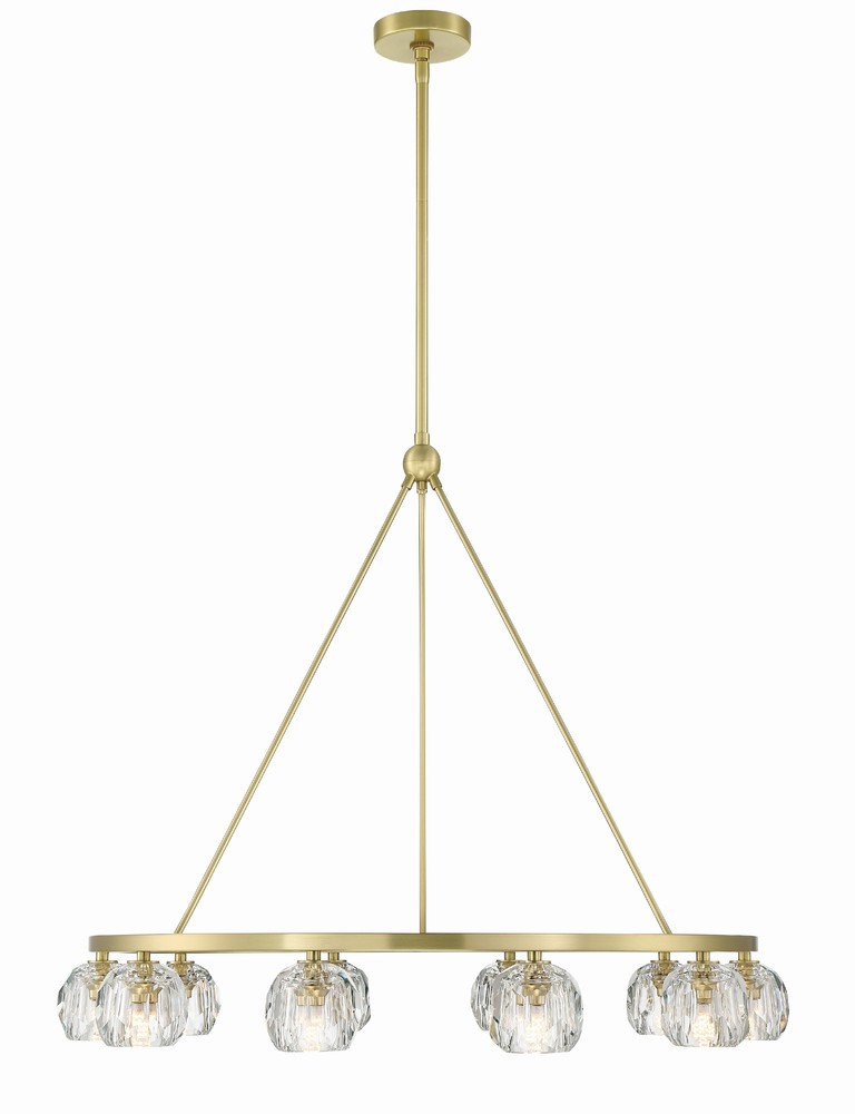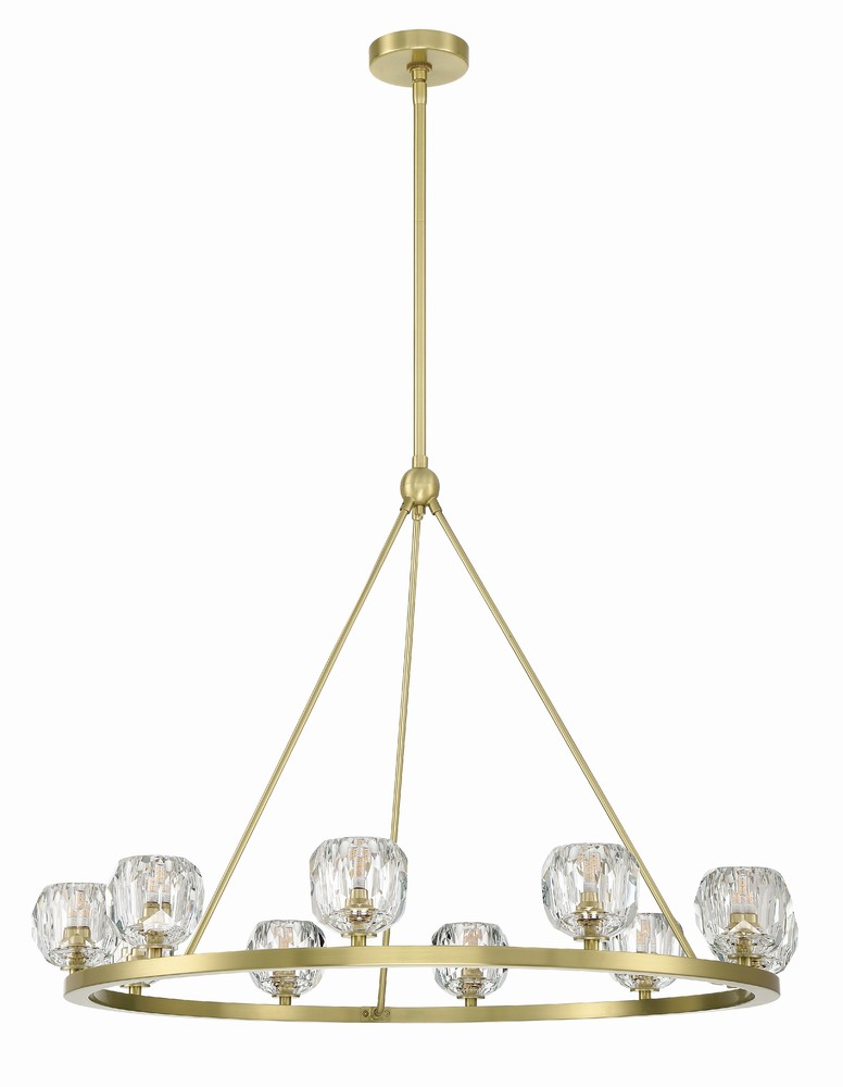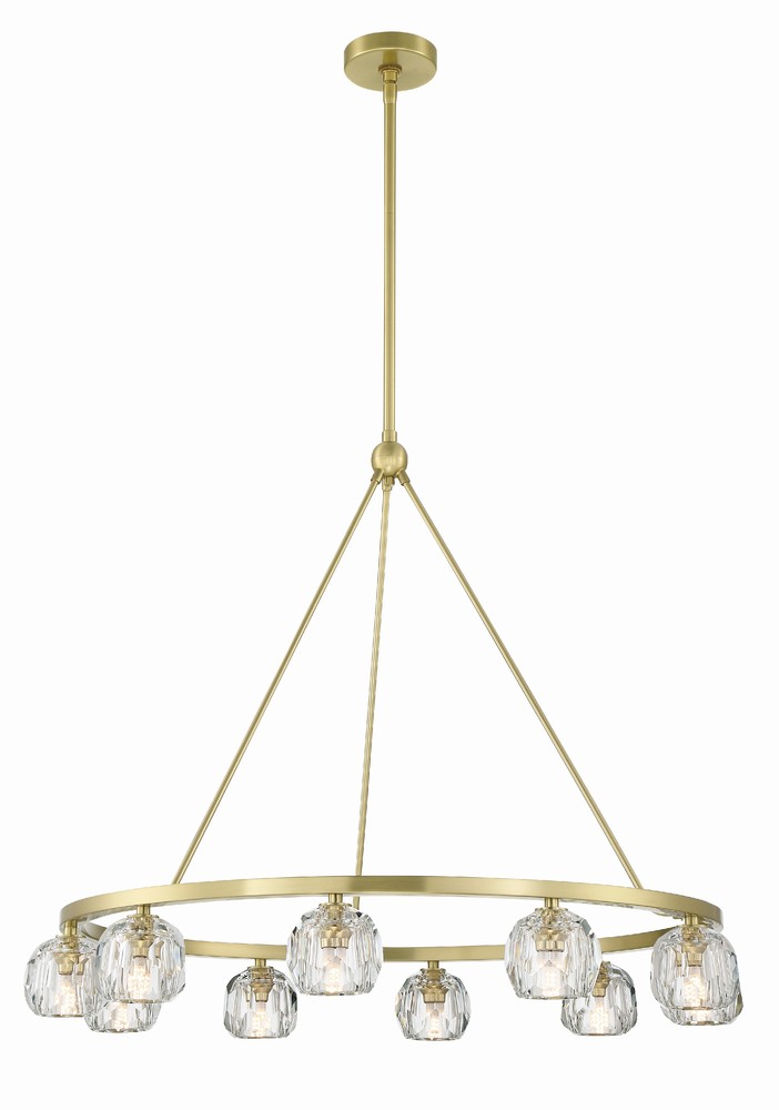 Finely crafted with great attention to detail, the Aragon Collection is a mix of industrial meets modern style. The Soft Brass minimalist look includes rods attached to a large frame, facet-cut crystal globes and packed-in G9 Dimmable LED Bulbs, (rated at 3000K, 400 lumens and CRI 80). This functionally timeless fixture can be hung with upward or downward-facing light giving you the flexibility to choose how you would like to set the mood of the room.