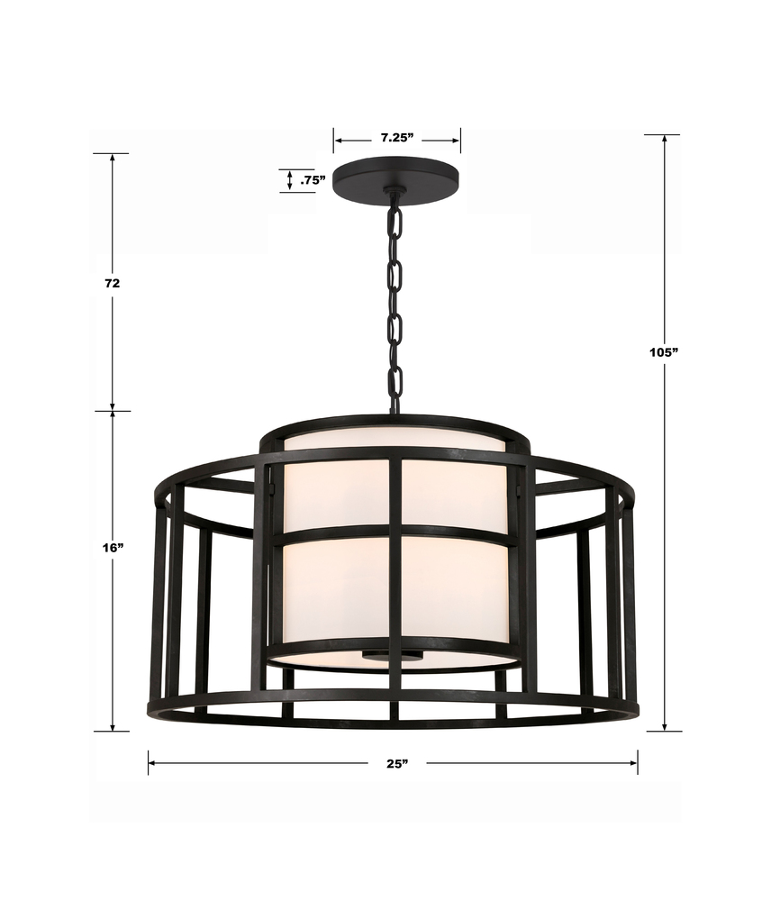 Bring style and substance to your favorite indoor space with Brian Patrick Flynn's Hulton Collection. Inspired by the shape and scale of classic drum pendants, the Hulton Collection adds a unique geometric twist to the category by incorporating a shade-less black metal drum form around the perimeter of the inner white silk drum shade. With its strong sculptural qualities and bold graphic lines, the Hulton Collection is the perfect statement piece for any room.