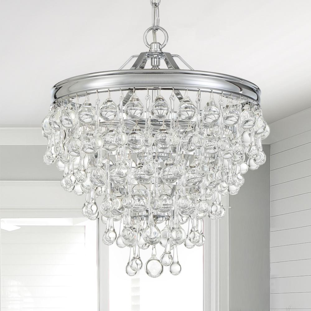 Elegance and glamour will illuminate the room with the Calypso collection. Draped in an abundance of smoothed shaped clear drops and balls, this contemporary collection is a perfect statement to a living room, dining room, bathroom, or entry.
