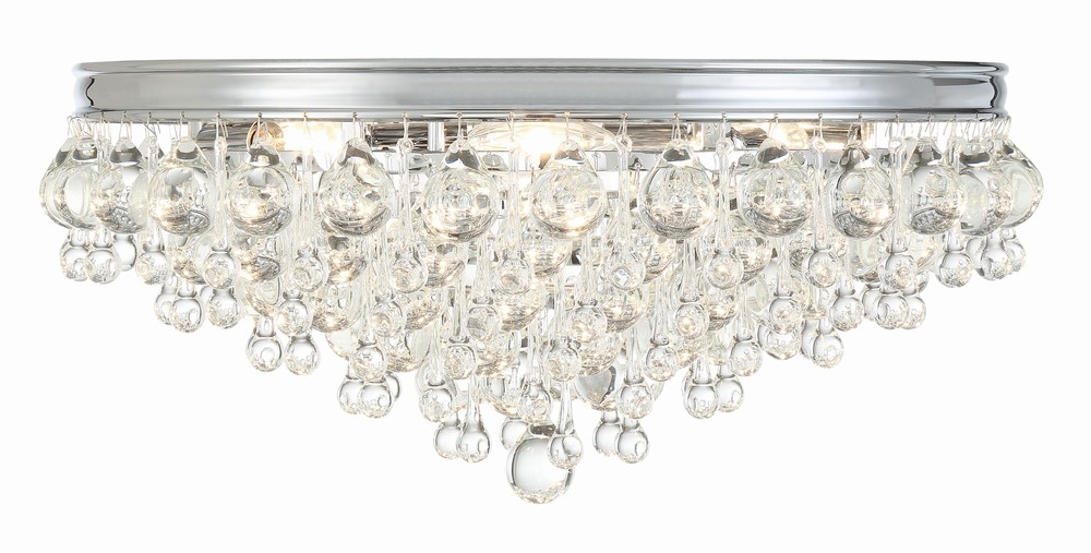 Elegance and glamour will illuminate the room with the Calypso collection. Draped in an abundance of smoothed shaped clear drops and balls, this contemporary collection is a perfect statement to a living room, dining room, bathroom, or entry.