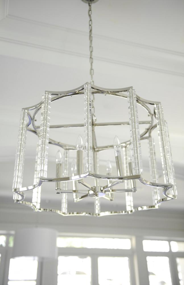 A luminescent crystal cubes create a high glam statement in the Carson Collection highlighting a sleek nickel based candle sleeves in the center. Magnificently modern, the fixture, adds the perfect amount of sophisticated statement to any space, and perfectly catches the light.