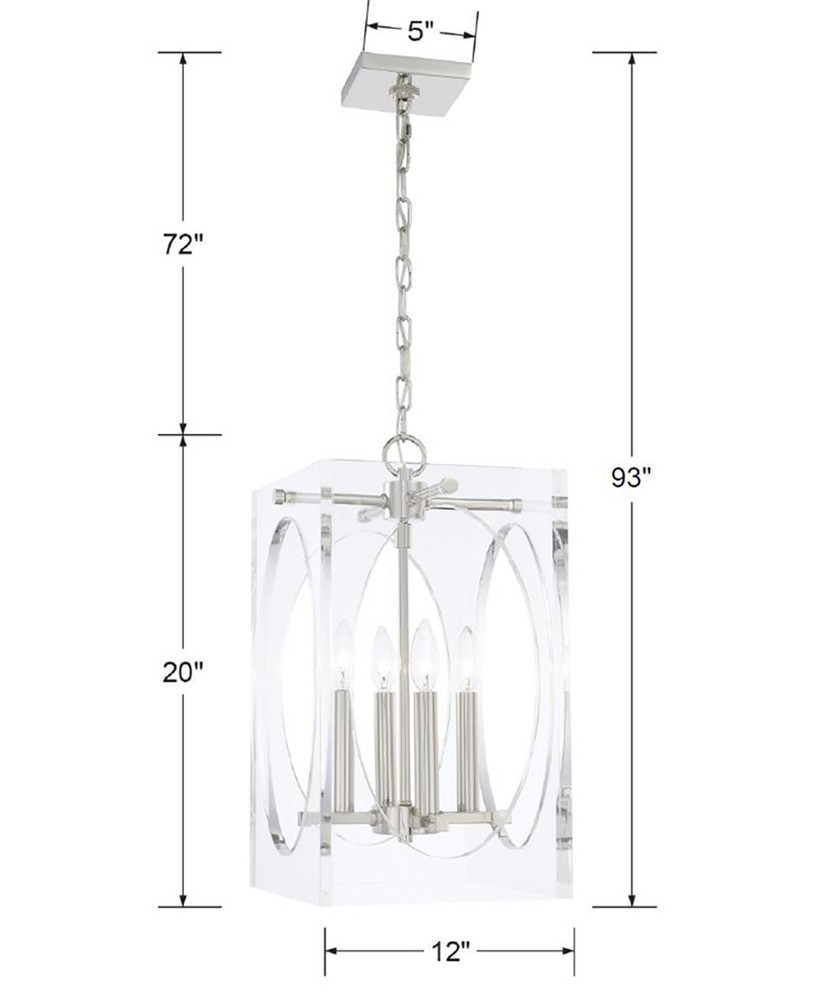 Turning today's most popular home decor trends into fashionable lighting, Crystorama's Drake Collection features an innovative fusion of solid chunky Lucite and geometric crossbars in a sophisticated, polished nickel finish. Both modern and clean, this boxy fixture is a beauty from all angles.