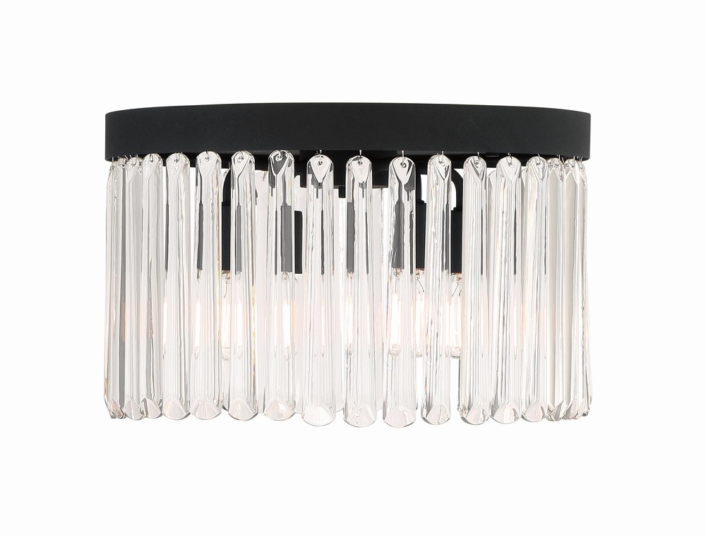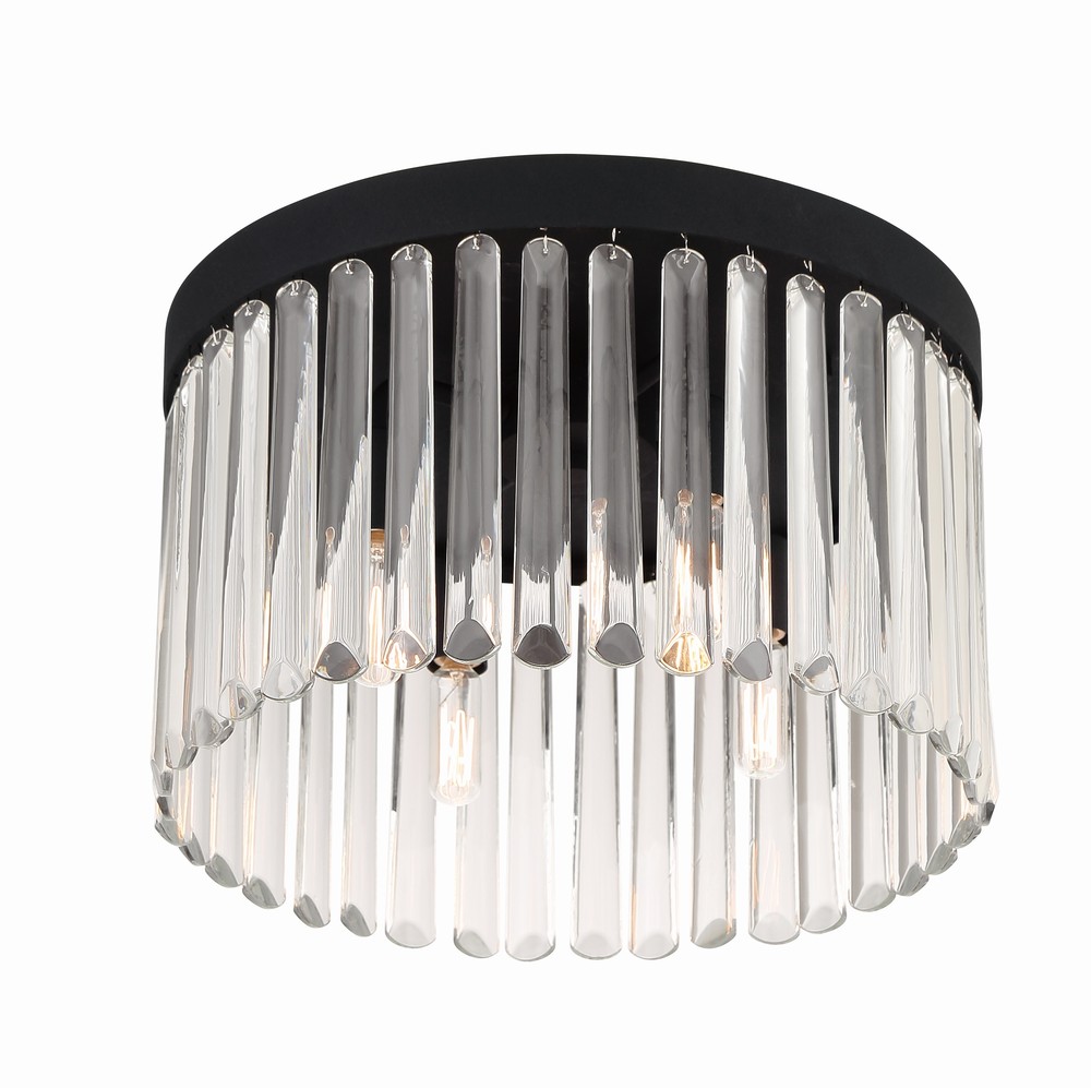 Art deco design is exemplified in the Emory collection. The collection features a row of smooth glass prisms hanging from a steel frame. Both the Black Forged and Modern Gold finishes, add all the sparkle and glamour you need in a fixture.