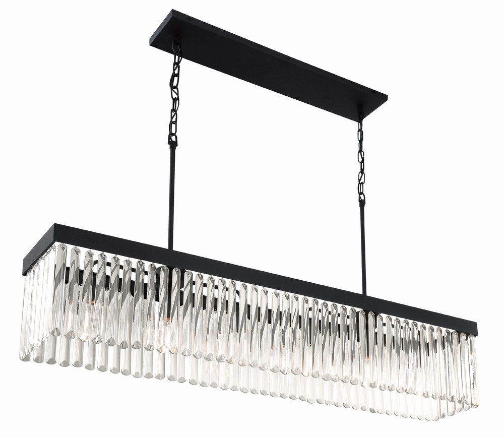 Art deco design is exemplified in the Emory collection. The collection features a row of smooth glass prisms hanging from a steel frame. Both the Black Forged and Modern Gold finishes, add all the sparkle and glamour you need in a fixture.