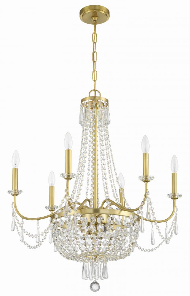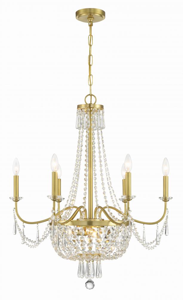 The Haywood is a luminary collection defined by its timeless elegance and classic empire silhouette. This fixture is a radiant centerpiece that adds a touch of luxury to any space. The Haywood's defining feature is its cascading crystal accents, which create a captivating display of light and sparkle. Its upward-sweeping arms, adorned with strands of faceted cut crystal jewels, create an enchanting ambiance. Each decorated with unique charm, the bobeches add a layer of sophistication to this stunning chandelier.