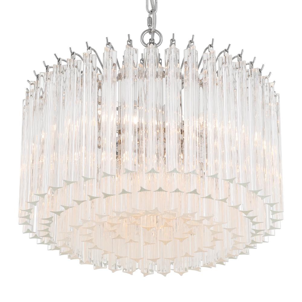 Showcases mid-century sophistication with its stepped, tiered design and distinctive Triedri glass rods.