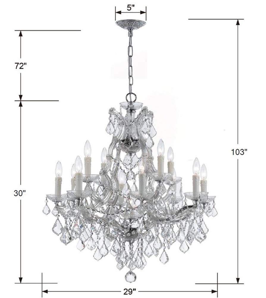 Draped in an abundance of crystal, the Maria Theresa collection is the epitome of high style. The fixture is stunning with glass arm frame decked with strands of faceted cut crystal. The fixture showcases opulence and decadence and is the perfect traditional accent to any space. Whether in a living room, or even closet or hallway, this fixture bring a luxurious addition to any decor.