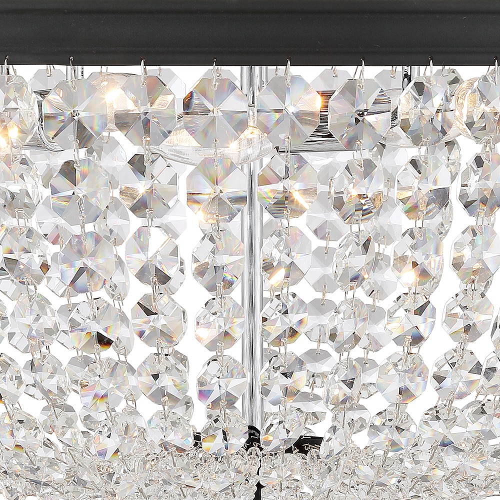 The Nola is a modern take on the traditional crystal basket ceiling mount. This beloved classic style comes in various sizes and finishes to enhance any décor. Its clean-lined frame and draping crystal body will add classic sophistication to any home.